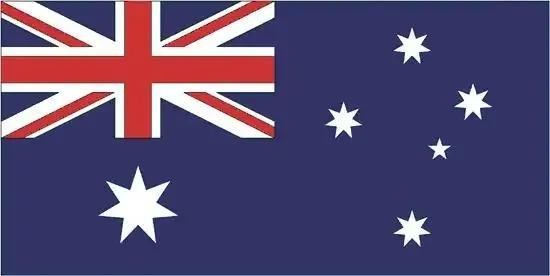 澳大利亚国旗由蓝色底色上,左上角的英国国旗、左下角的七芒星和右侧的南十字星座组成。