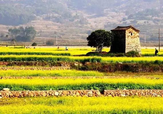 而小村附近的层层梯田,与村落的袅袅炊烟、村中劳作的人群,组成一幅浓浓的山水田园画。