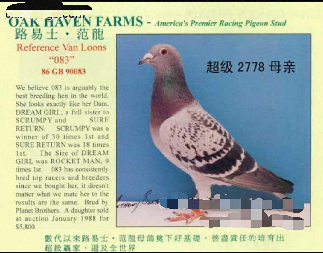而中国鸽友,随着和国际鸽坛接轨,也逐步认识到凡龙鸽系取得的辉煌成绩和伟大之处,不惜重金引种。