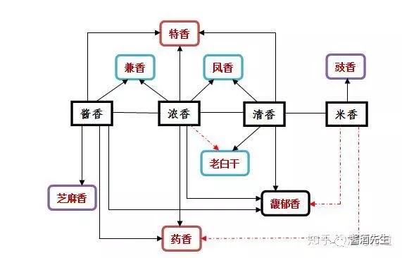 浓香型白酒的香气以窖香、糟香、曲香、陈香最突出。后来,许多产品通过降度以后,让人感受到非常明显的粮食的气味,所以现在浓香型白酒的香气,大概可以分为粮香、窖香、糟香、曲香、陈香。