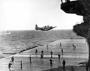 8时20分,“企业”号的两架SBD飞抵瓦胡岛,发现珍珠港上空满布防空炮火,而机场上空又有多架从本土飞来的陆军航空队B-17“空中堡垒”轰炸机在盘旋。正当两机狐疑之际,多架“零”式战斗机突然冒出并先发攻击。两机在看到“零”式机翼的旭日图案后,才醒悟原来珍珠港遭到日本空袭。这两架SBD使劲摆脱“零”式围猎,并躲过密集的友军防空炮火,奇迹般降落到珍珠港中央的福特岛机场。不久,余下的15架SBD也飞抵珍珠港,并有13架安全降落。