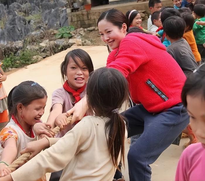 除了捐钱捐物之外,江一燕每年还会抽出固定时间到当地给孩子们上课。