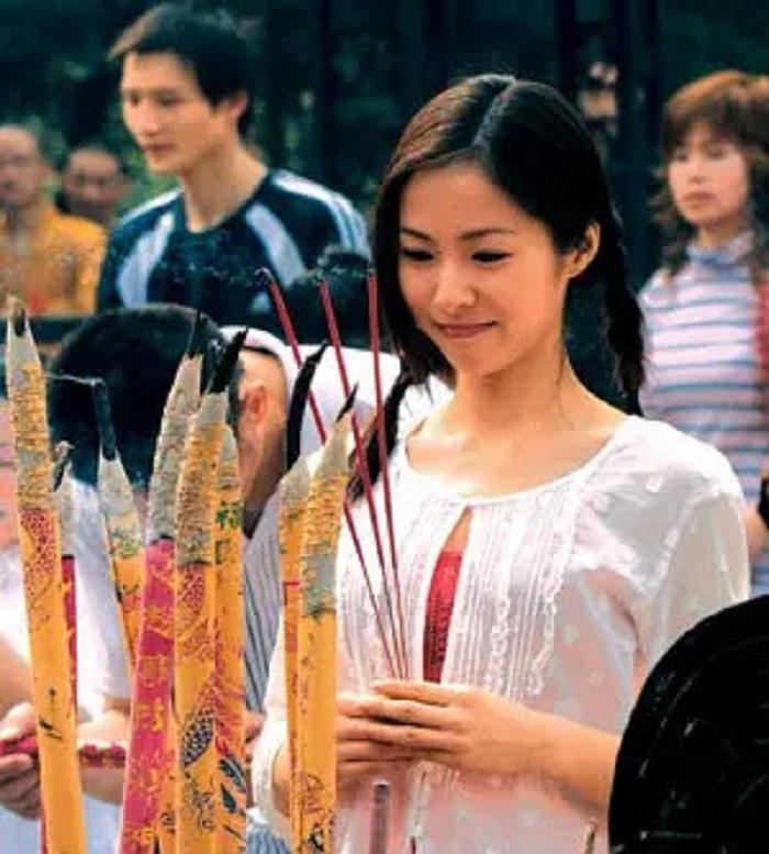 其中有一组镜头,是她和吴镇宇在寺庙里烧香。