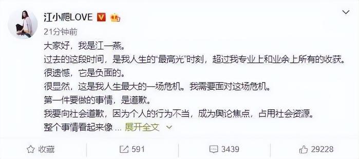 要说江一燕仅仅是沽名钓誉,那被网友嘲笑一段时间也就慢慢平息了。