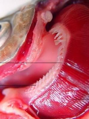 头的后部两侧鳃盖后缘有一对鳃孔(只有鳝鱼特殊,其左右鳃孔合成一个,位于腹面),它是呼吸时出水的通道水里。