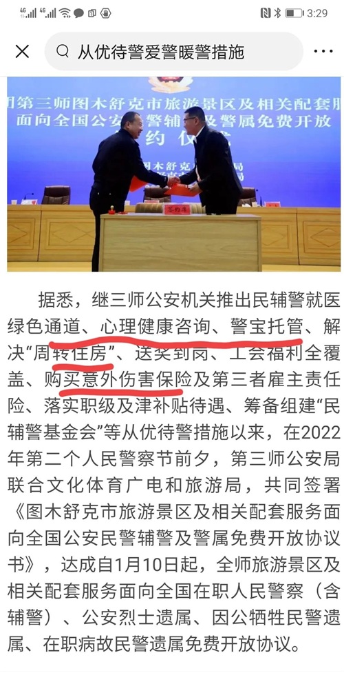 五、有的地方公安想办法解决民辅警的实际困难。三师公安机关推出“警宝托管、购买意外伤害险、组建基金会等实招。