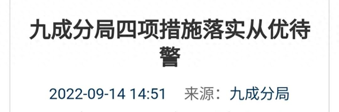 《九成分局四项措施落实从优待警》,其中“科学用警,提升警务效能”。聚焦集约化管理,提高警务运行效率。充实一线警力,压缩非执法岗位民警人数,抽调机关等民警参与执勤等工作,一定程度上缓解基层警力紧张的问题。