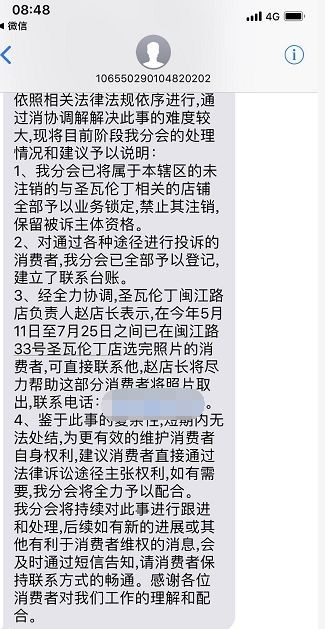 圣瓦伦丁闽江路店负责人赵店长表示,在今年5月11日至7月25日之间已在闽江路33号圣瓦伦丁店选完照片的消费者,可直接联系他,赵店长将尽力帮助这部分消费者将照片取出。