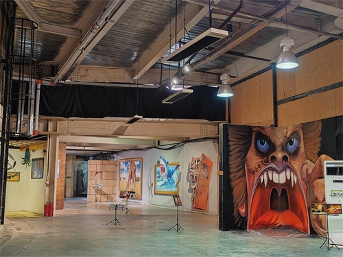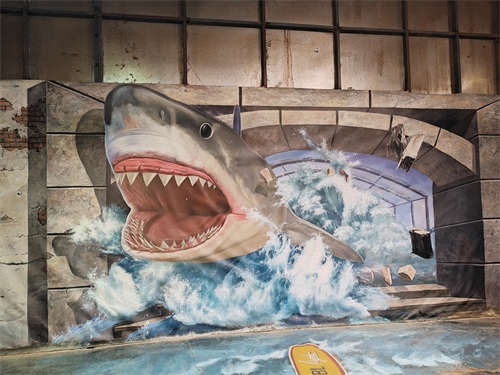 不过,我刚进去的时候很不适应,我的注意力并没有完全集中在画上,而是将那些画外的厂房墙壁、地面、屋顶全部看入眼里,立体夸张、活物恐怖、生动逼真的效果就打了很大的折扣。直到我拍了图片删掉画外不相称的干扰部分,才发现其中的奥妙!