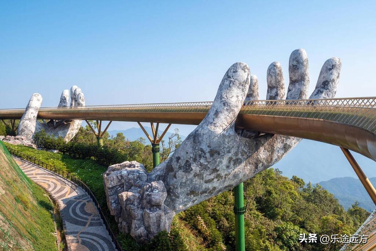 巴拿山佛手桥:这座网红佛手桥真的超级震撼!巨大的佛手托起洁白的桥梁,漫步桥上,仿佛置身于仙境之中。