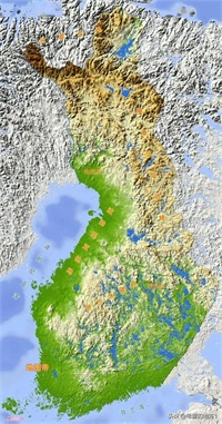 芬兰被誉为千湖之国。内陆水域约占全国总面积的10%;拥有湖泊约18.8万个。芬兰地势平坦,拉普兰北部地区位于芬兰和挪威交界的哈尔蒂亚峰,海拔约1328米,为芬兰最高点。