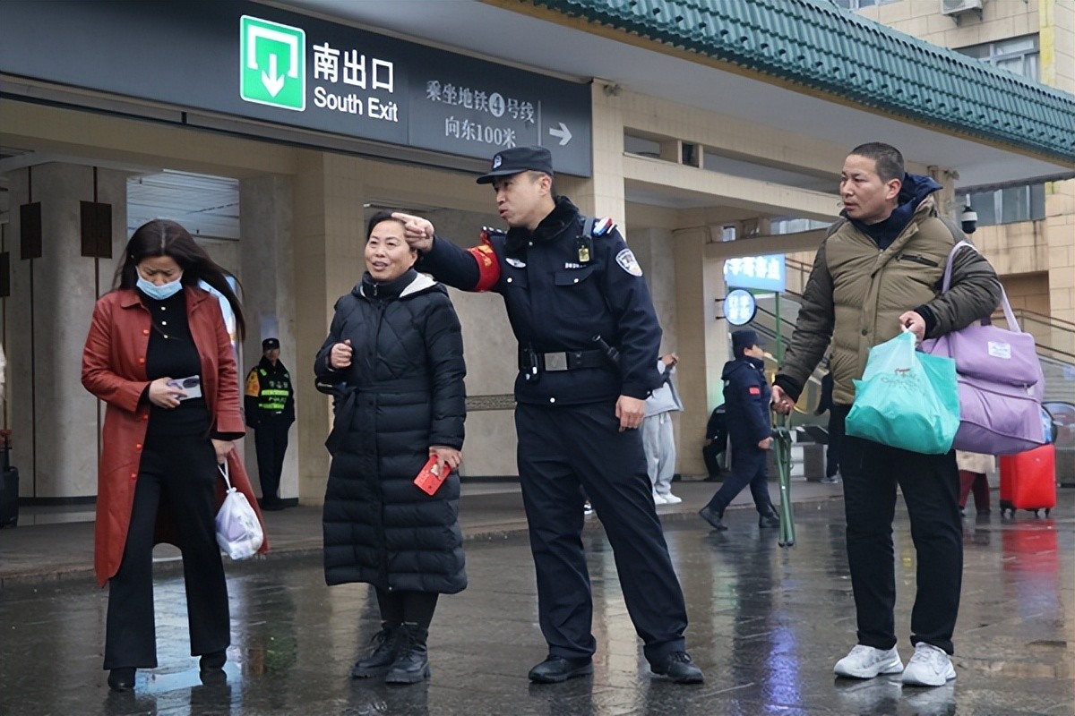 1月26日,西安铁路公安局西安公安处民警在出站口疏导客流,引导旅客安全出站。