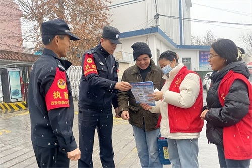 1月26日,西安铁路公安局西安公安处民警在开展线路安全法制宣传。
