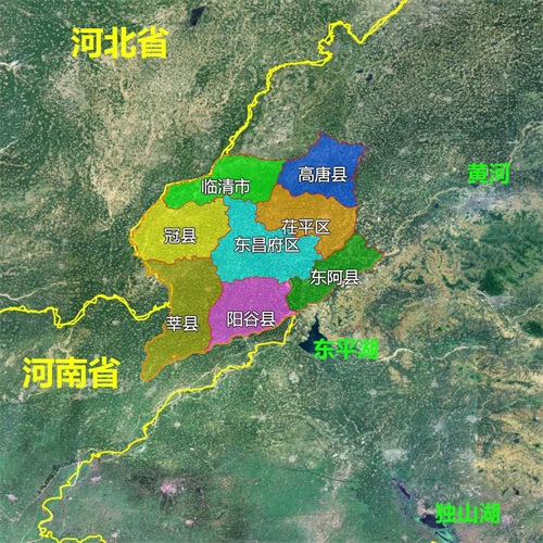 全市总面积约8715平方公里,常住人口约610万,市辖2区5县1县级市,分别是东昌府区、茌平区、冠县、莘县、阳谷县、东阿县、高唐县和临清市。