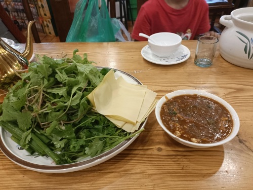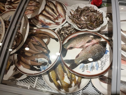 漠河在黑龙江边,江鱼不少,找一家名店品尝了一下狗鱼,东北蘸酱菜对像我这种南方人也得尝一下,素蘑菇汤也不错。