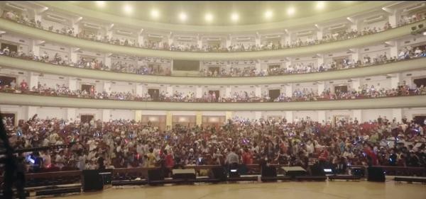 全景俯瞰演唱会现场,冯提莫站在台上,台下密密麻麻的都是荧光棒和手机的光亮!可以说是座无虚席,再次让人震撼!可以说冯提莫成功了!她真的凭借自己的能力,实现了转型!成为了一名真正的歌手!舞台中间的她是如此的耀眼!冯提莫演唱会的成功更是为很多有实力的网红们正名!