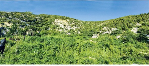 如今寺庙的大殿已经损毁,后面相距一步,有一间石室,室中供奉着天然石佛像,东面有一口石井。连着石井向上不远处,还有一个石窟,窟中坐着一尊观音抱子的石像,闭目安详,形神肃然。