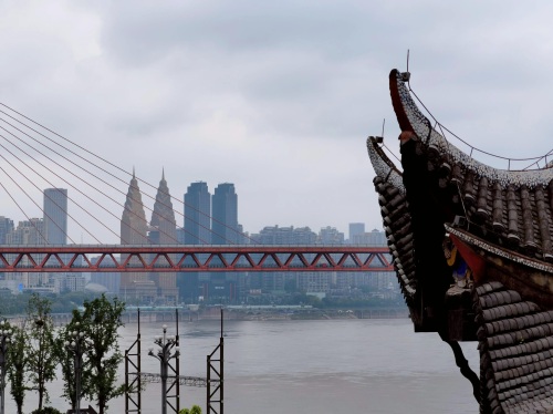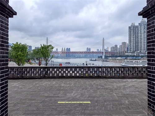 现在观景台看长江对岸的来福士