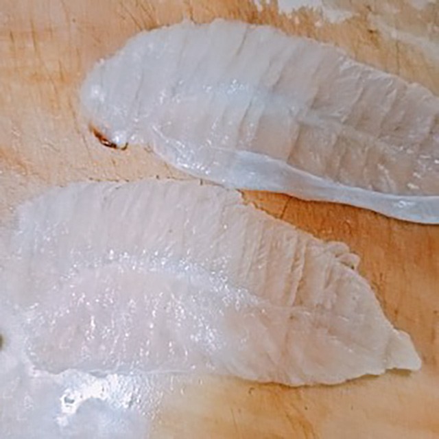 1.准备一个生姜,去皮切片,小葱切成葱段,鸡胸肉从中间切开,边缘处不要切断,再打开,用刀背拍拍,再来切一片,用刀背敲敲,