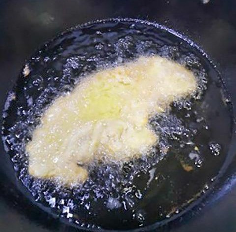 3.起锅倒油,油温6成热,倒入鸡排,炸制3分钟,开小火就行,翻面再炸3分钟后捞出,切成长条形,搭配上番茄酱,或者撒点椒盐就好了!