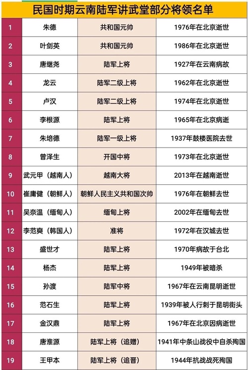 民国军校|云南讲武堂、保定和黄埔军校部分优秀将领名单(收藏)