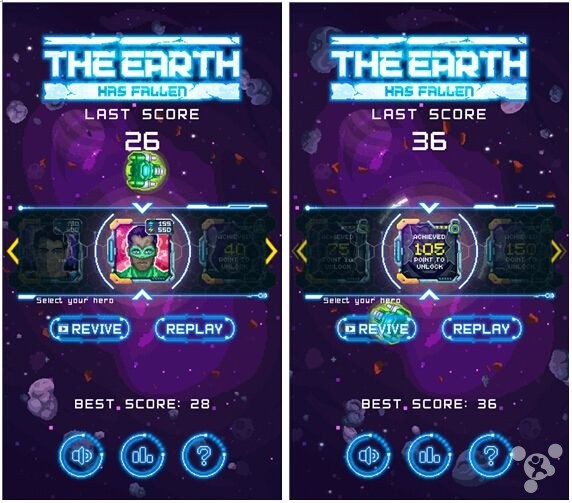 至于新英雄解锁,结合游戏难度来说,分数要求确实有点高,不过话说回来,就算解锁了新的英雄也只是在外观上有所不同,保卫地球的任务依然艰巨。总的来说这款游戏确实比较虐心,操作简单并不代表毫无难度,要说游戏的短板,那应该就是深度不足以及缺乏一种稳定提升玩家操作水平的机制。