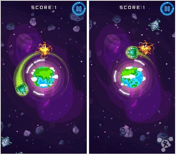 我们的英雄会在地球周围做圆周运动,而他们驾驶的飞船有金刚护体,可以将敌人撞个粉碎,操作上我们只需要点击一下即可改变飞船的运动方向,长按可以加速飞行,从上手的角度来说并不难,可令人不太适应的是,长按加速的同时会附带一个转向效果,这就很尴尬了。