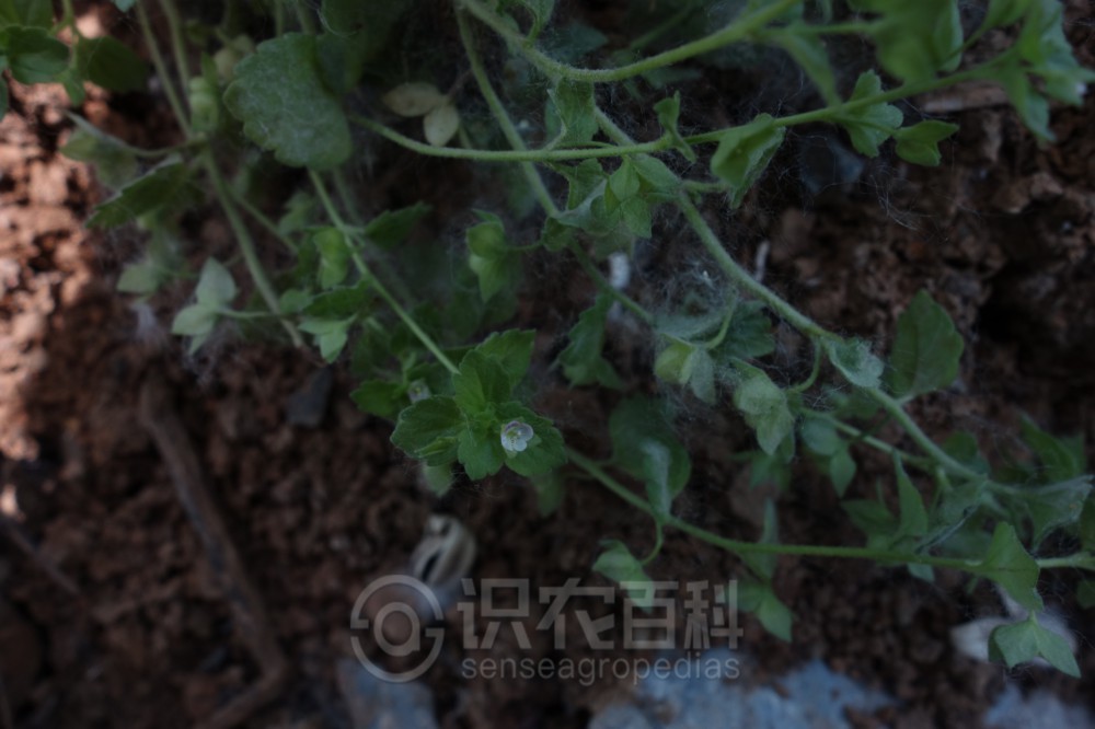 高10-25厘米。叶仅2-4对,具3-6毫米长的短柄,叶片心形至卵形,长5-10毫米,宽6-7毫米,每边有2-4个深刻的钝齿,两面被白色长柔毛。总状花序很长;苞片叶状,下部的对生或全部互生;花梗比苞片略短;花萼裂片卵形,顶端急尖,果期稍增大,三出脉,疏被短硬毛;花冠淡紫色、蓝色、粉色或白色,直径4-5毫米,裂片圆形至卵形;雄蕊比花冠短。蒴果近于肾形,密被腺毛,略短于花萼,宽4-5毫米,凹口约为90度角,裂片顶端圆,脉不明显,宿存的花柱与凹口齐或略过之。种子背面具横纹,长约1.5毫米。花期3-10月。