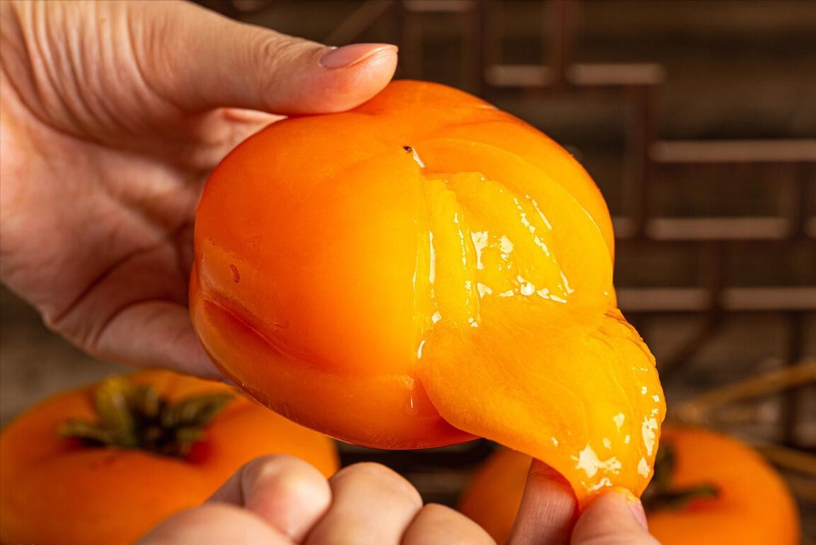 柿子一定要熟了才吃,不然口感很涩,无法下口。所以吃柿子不要急,没熟的时候,和苹果一起放几天,等到红彤彤的再吃,那才甜。