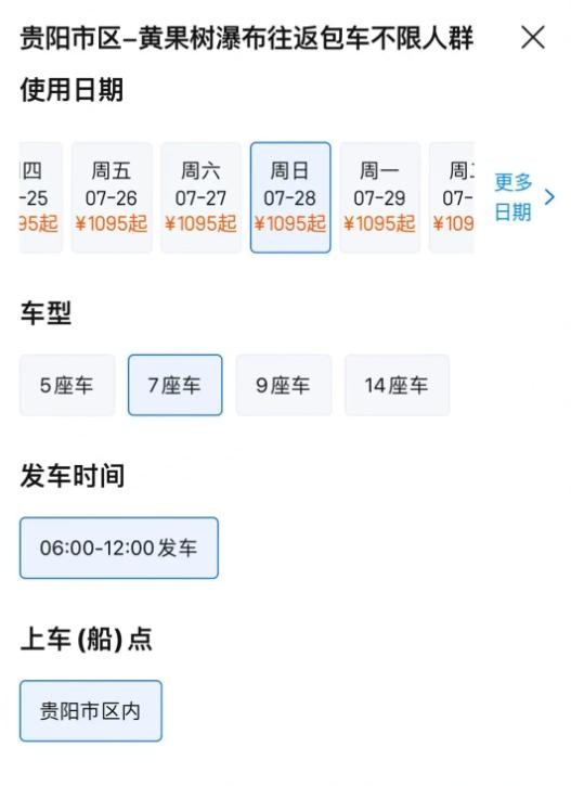 2、携程最早一班是7点到7点半,贵州景区直通车是七点半,根据自己的实际情况选择合适的时间段;