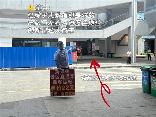 1、出站后会遇到拿着蓝底白字的人说是黄果树和龙宫的咨询点,其实不是,这是旅行社的,价格可以自己衡商,一般是45元/人,根据自己需求选择,如果只想做官方景区大巴的,一定要找到一个拿着红底白字的工作人员,他的指引是对的!