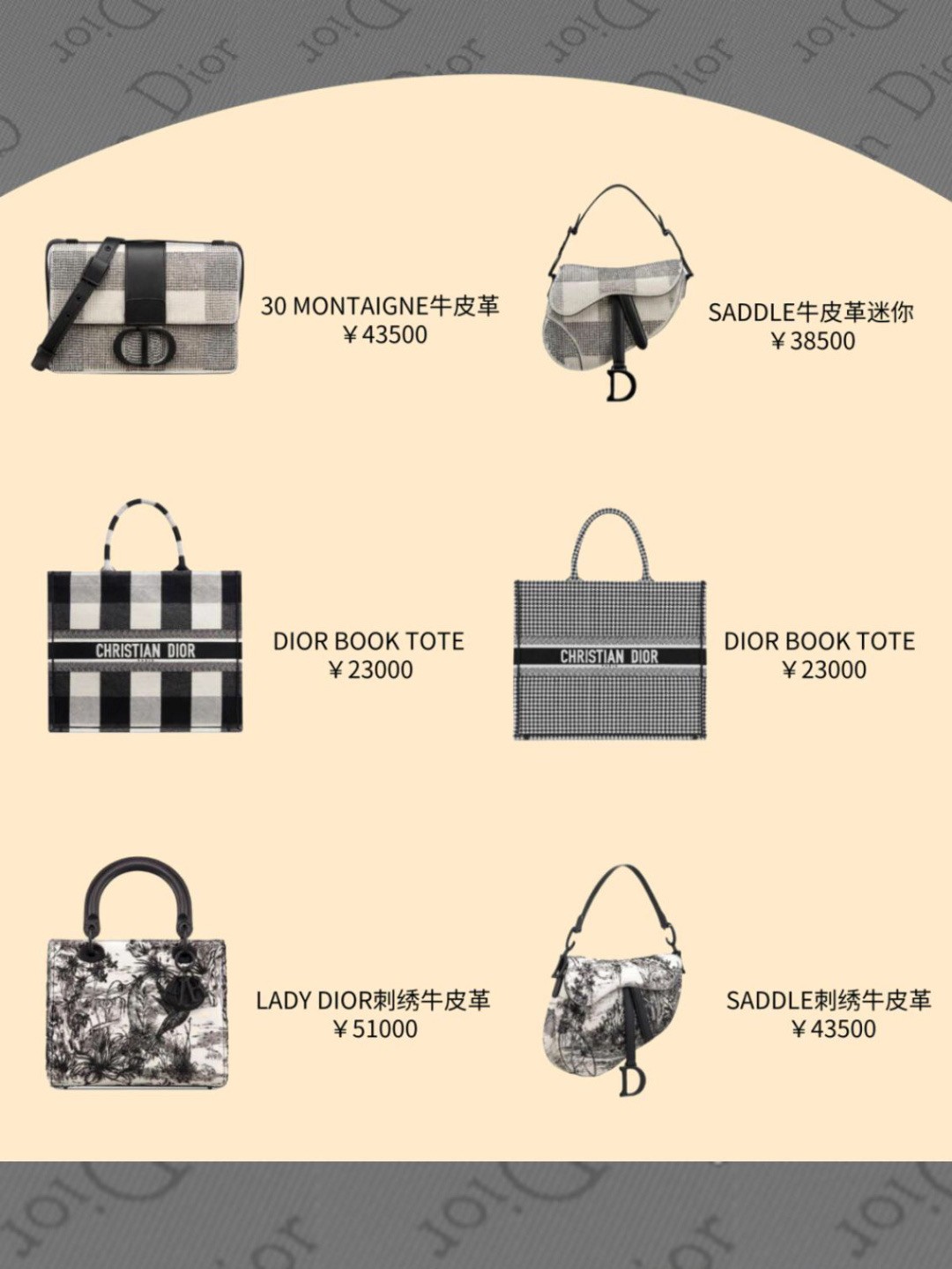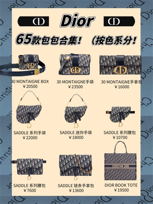 按色系,今天给大家整理的是Dior五大系列的包包合集~