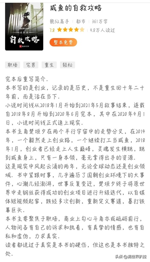 咸鱼是最近几年看过的仙草之一,作者有自己的思考推演不是瞎写,强烈推荐大家去看看!!!