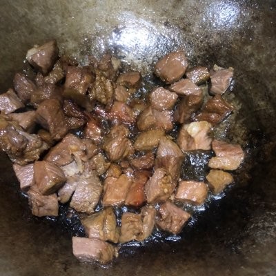 4、加入驴肉快速翻炒