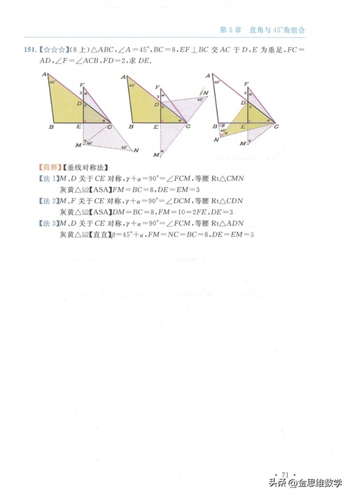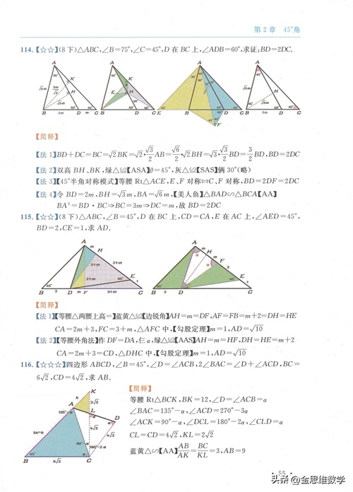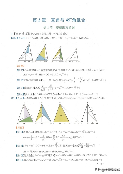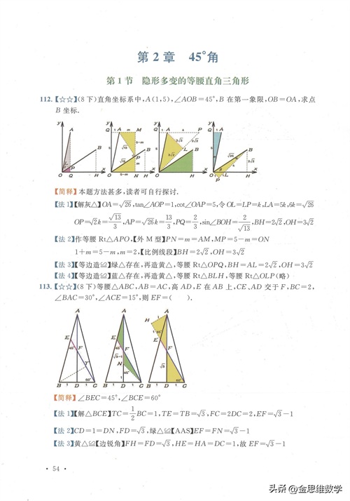 45°角是极特殊的一个角,自带主角光环。通过45度角,最关键的是可以和等腰直角三角形、正方形联系在一起,让问题的解决变得比较轻松,今天我们来分析其中的7个技巧专题吧。#电子版资料#
