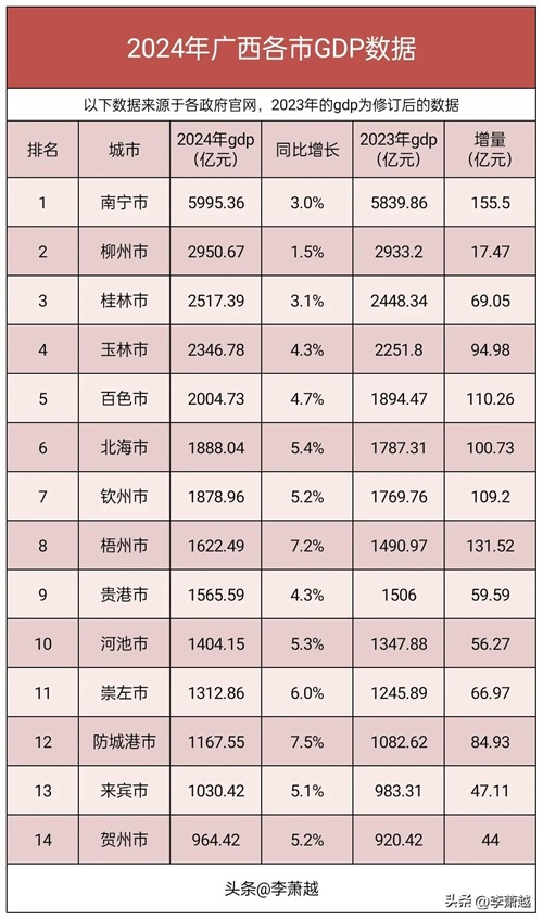 南宁市2024年GDP逼近6000亿大关,“一家独大”的格局已成!