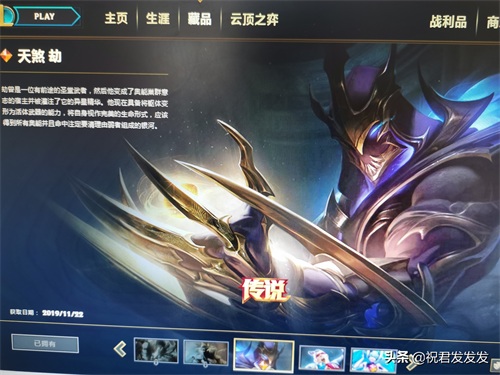 联盟打折消息各位老铁们都知道了吧,我这里就不多说了,既然是打折总得给联盟点面子,过凑个数,选了两款皮肤,盲僧的金靴踢足球的那款,另一款天煞劫,作为一个喜欢玩盲僧的人来说,有限定皮肤而且半价卖,当然要买了,劫也玩得非常多,玩得好不好,我不敢说,但是算是老忠粉了。