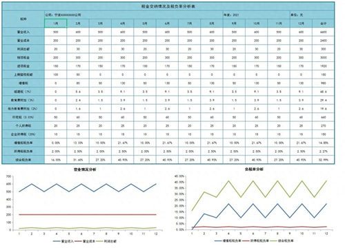 税负率对于企业来说是件很重要的事情,但是税负率不像税率,是个固定的数值,而是通过计算公式计算出来,增值税税负率=实际交纳增值税税额/不含税的实际销售收入×100%,所以有些公司稍有不注意就有可能超出边界线,所以有小伙伴就做出了税负率预警报表,更加有利于观察。
