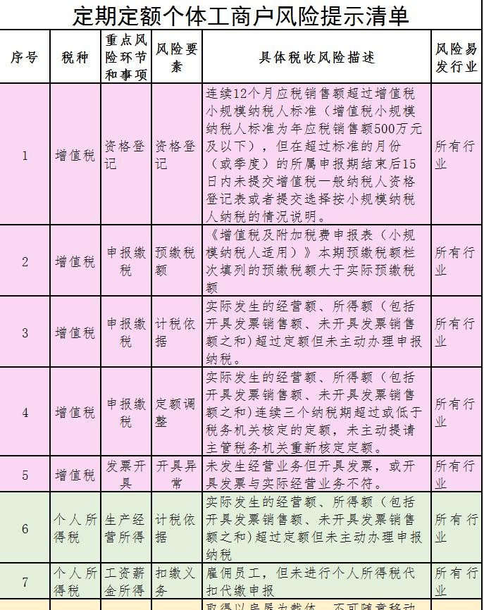 定期定额个体工商户风险