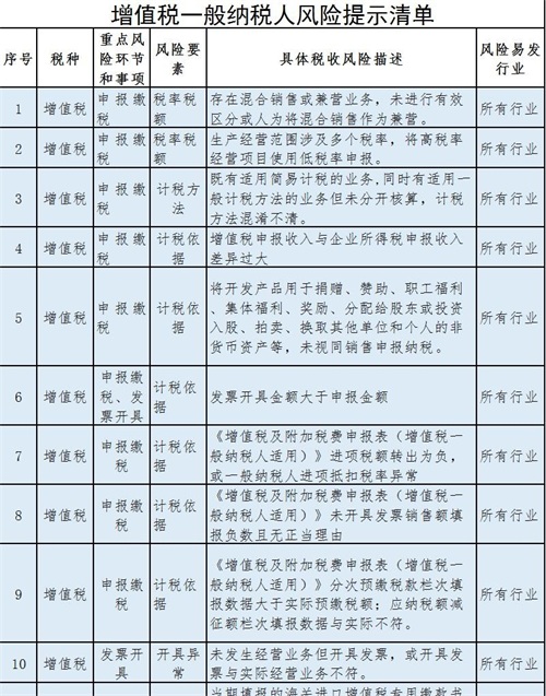 增值税风险提示