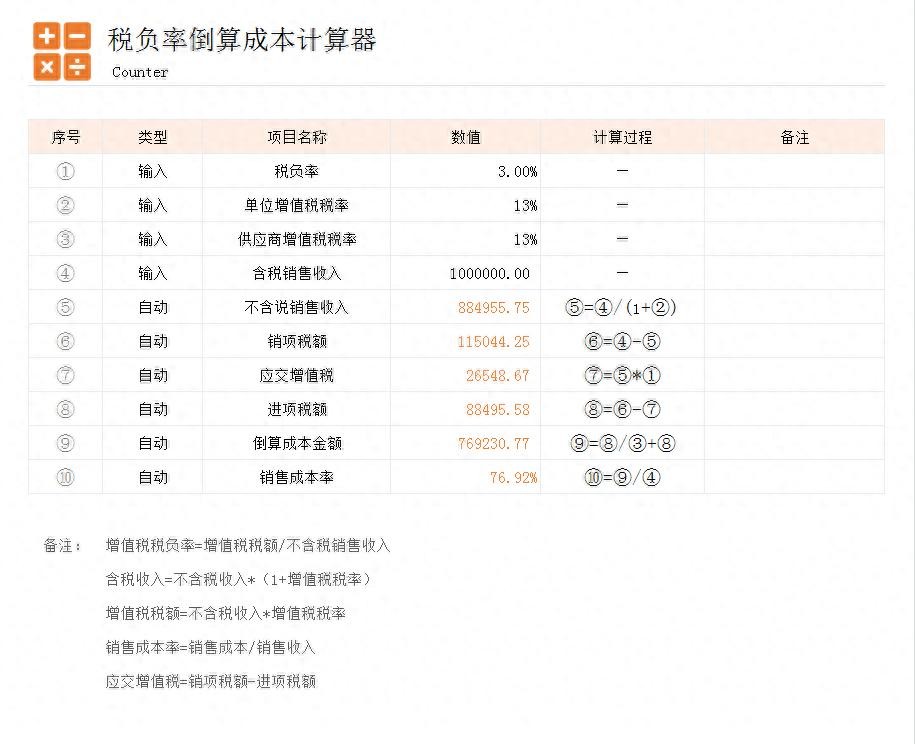 税负率计算公式