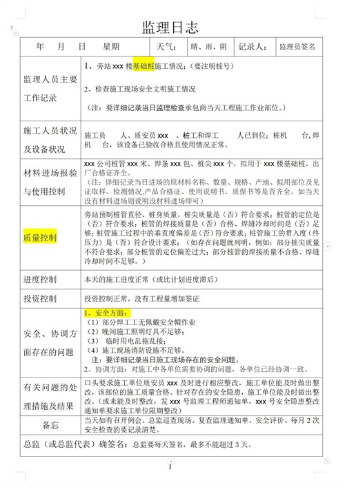 老监理带来的监理日志表格是真的牛,15套监理日志范本内容全面!