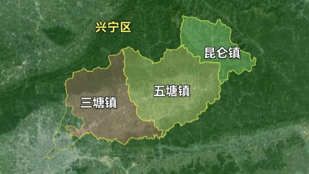 第一个兴宁区,总共有三个镇,分别是三塘镇、五塘镇、昆仑镇。