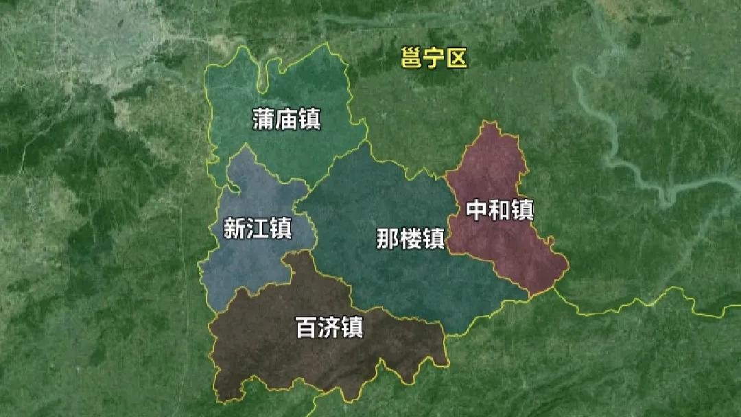 第六个邕宁区,总共有五个镇,分别是蒲庙镇、那楼镇、新江镇、百济镇、中和镇。