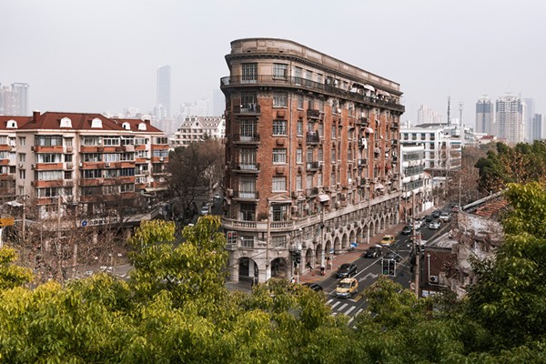 武康大楼原名诺曼底公寓,又称东美特公寓,始建于1924年,位于徐汇区淮海中路1842至1858号,在天平路、余庆路、兴国路、武康路和淮海中路的交界处,占地面积约1580平方米,当时由万国储蓄会出资兴建,设计师是旅居上海的邬达克。武康大楼为钢筋混凝土结构,共8层,楼高30余米,建筑面积约9275平方米,前部为骑楼样式,是上海第一座外廊式公寓大楼,也是上海最早一批现代化高层公寓。武康大楼大面积的钢窗、铸铁栏杆阳台、阳台下的“牛腿”栏杆,让人们见识了法国文艺复兴式建筑风格的华美。