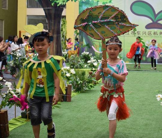 在“六一”儿童节即将到来之际,东兴区机关幼儿园策划了一场创意时装秀,小朋友和家长、老师一起用搜集来的废弃衣料、塑料袋、旧报纸、桌布等各种废旧材料,制作成亮丽的环保服饰,通过环保时装秀让孩子们在展现自我风采的同时,让他们亲身体验变废为宝的乐趣,从小培养参与环保爱护环境的良好习惯。