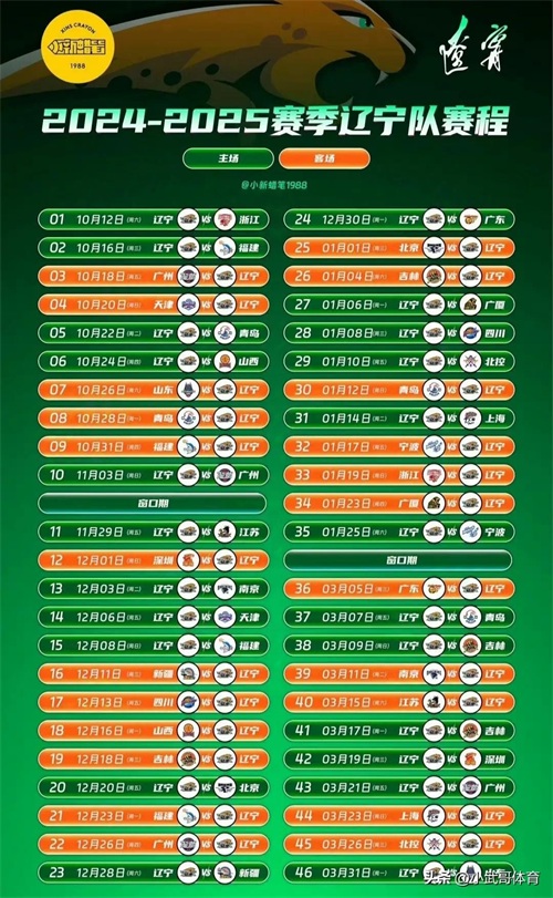 辽宁男篮赛程: