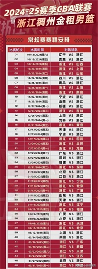 为了辽宁和浙江球迷,附了两队本赛季常规赛赛程。
