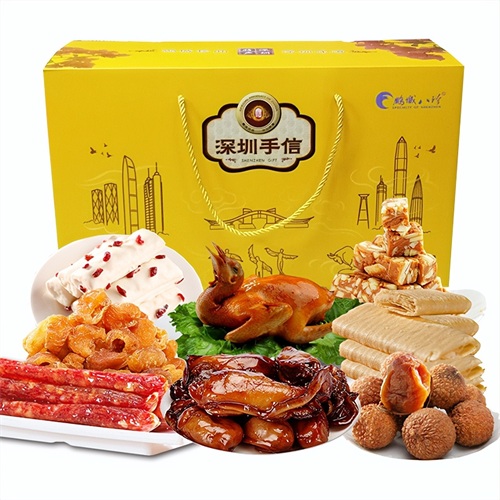 深圳本土品牌,把8款深圳本土特产放到一个大礼盒,礼盒外观高档大气,提在手上,说走就走,适合带着走亲访友。