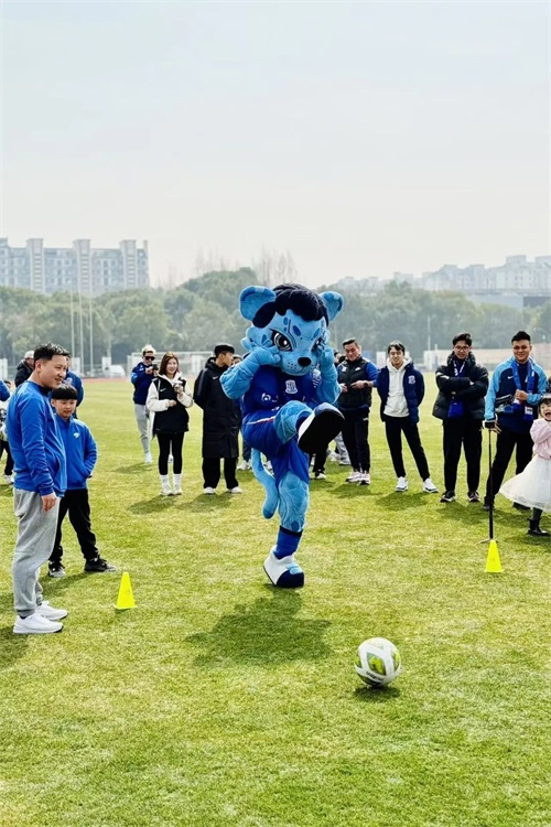 申花吉祥物“布鲁”与球迷们互动